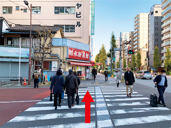 2/信号のある横断歩道を『水新菜館』の方へ渡り