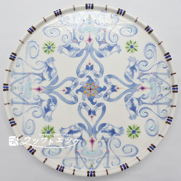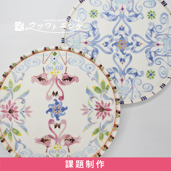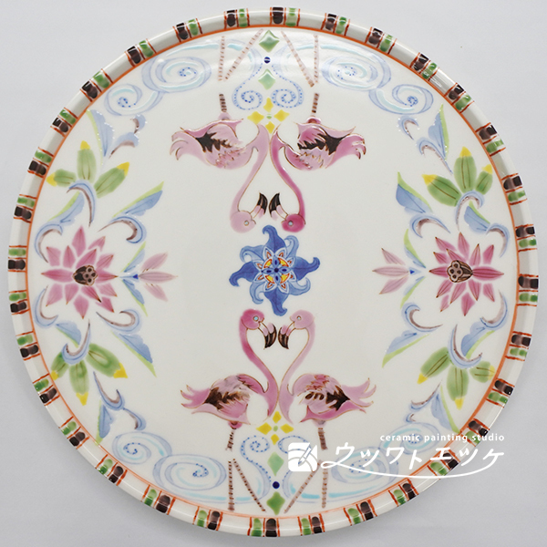 今回は約20cmの丸皿にフラミンゴや花などを描きます。