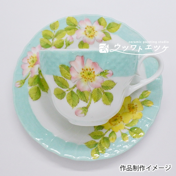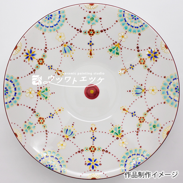 ただし3回の講座内ですべて制作するには少し作業量が多いので、カップソーサー、あるいはケーキ皿いずれかを授業内で制作し、他のアイテムも描かれる場合は自宅や自習室を利用して制作される、などがよいかと思います。